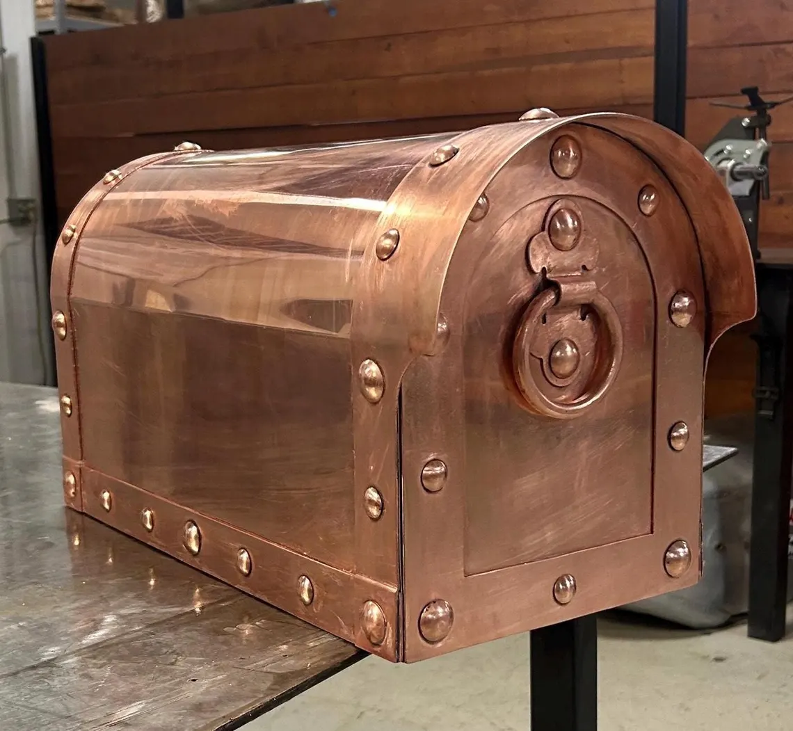 This unique handcrafted copper mailbox is a true work of art, created with precision, craftsmanship, and the finest materials. Every detail is meticulously crafted—from the selection of premium copper to the week-long process of making this masterpiece. Built for decades of use, this mailbox is not only functional but also a stylish accent for your home.